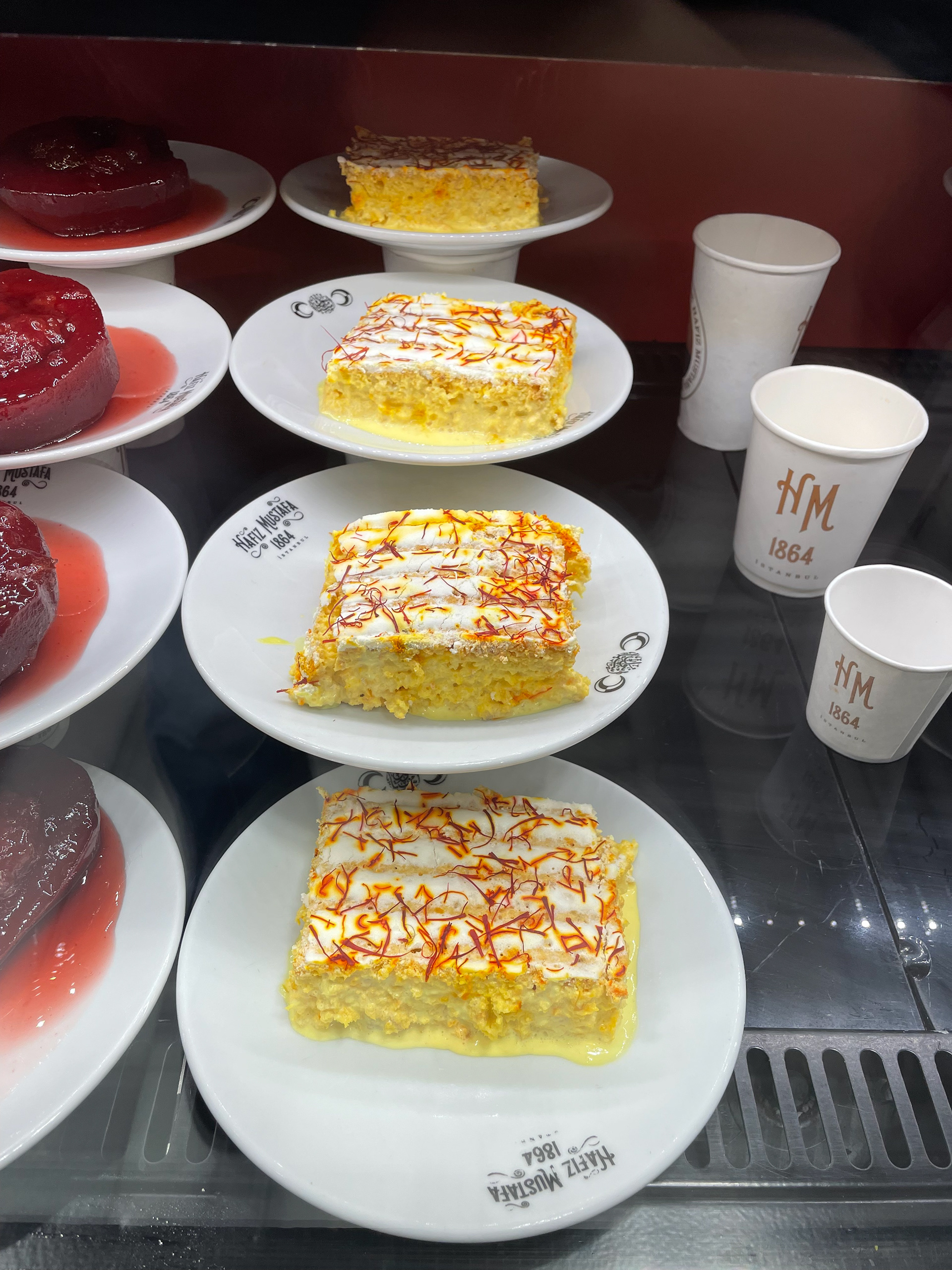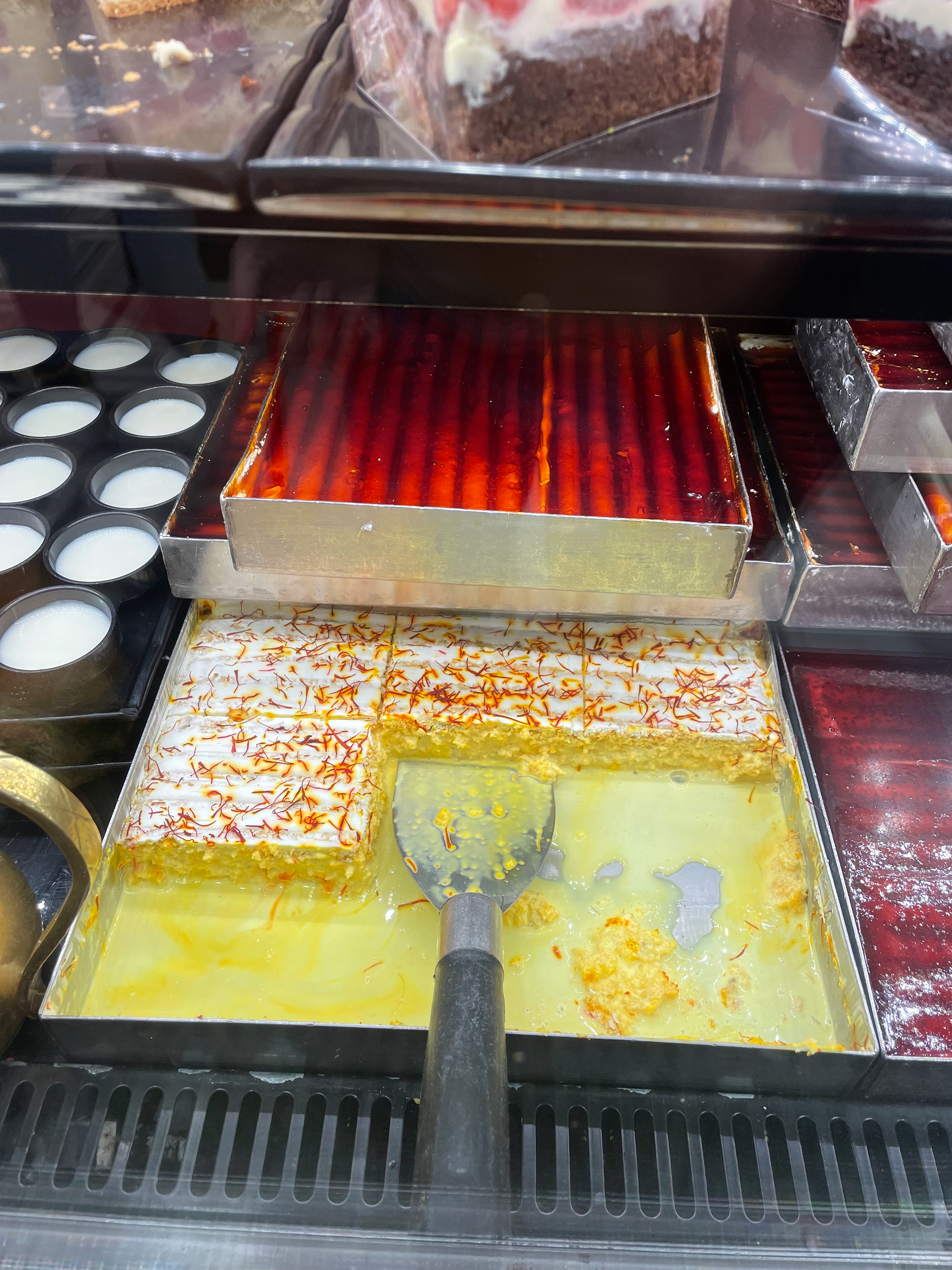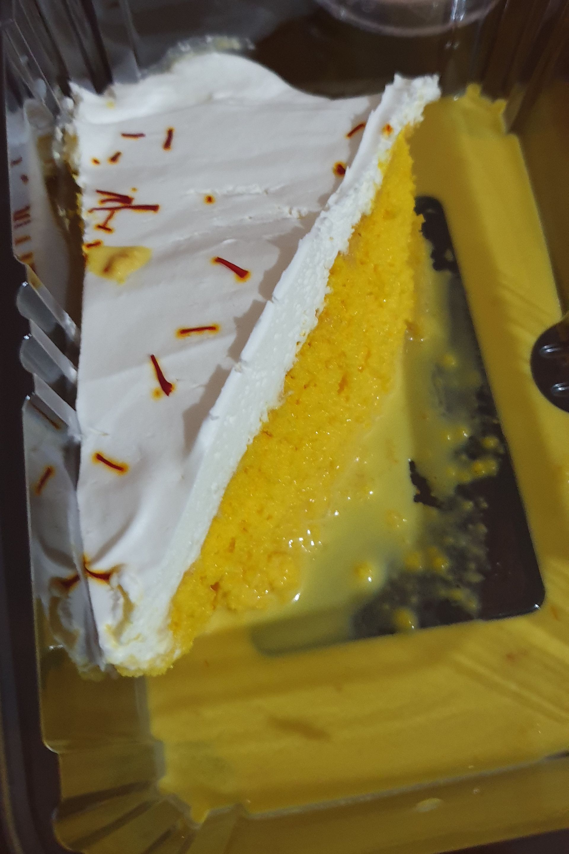 Saffron Milk Cake from Asha's in Kuwait. Heavy on the cardamom, and the cake itself isn't particularly milky (note the right half which is dry).